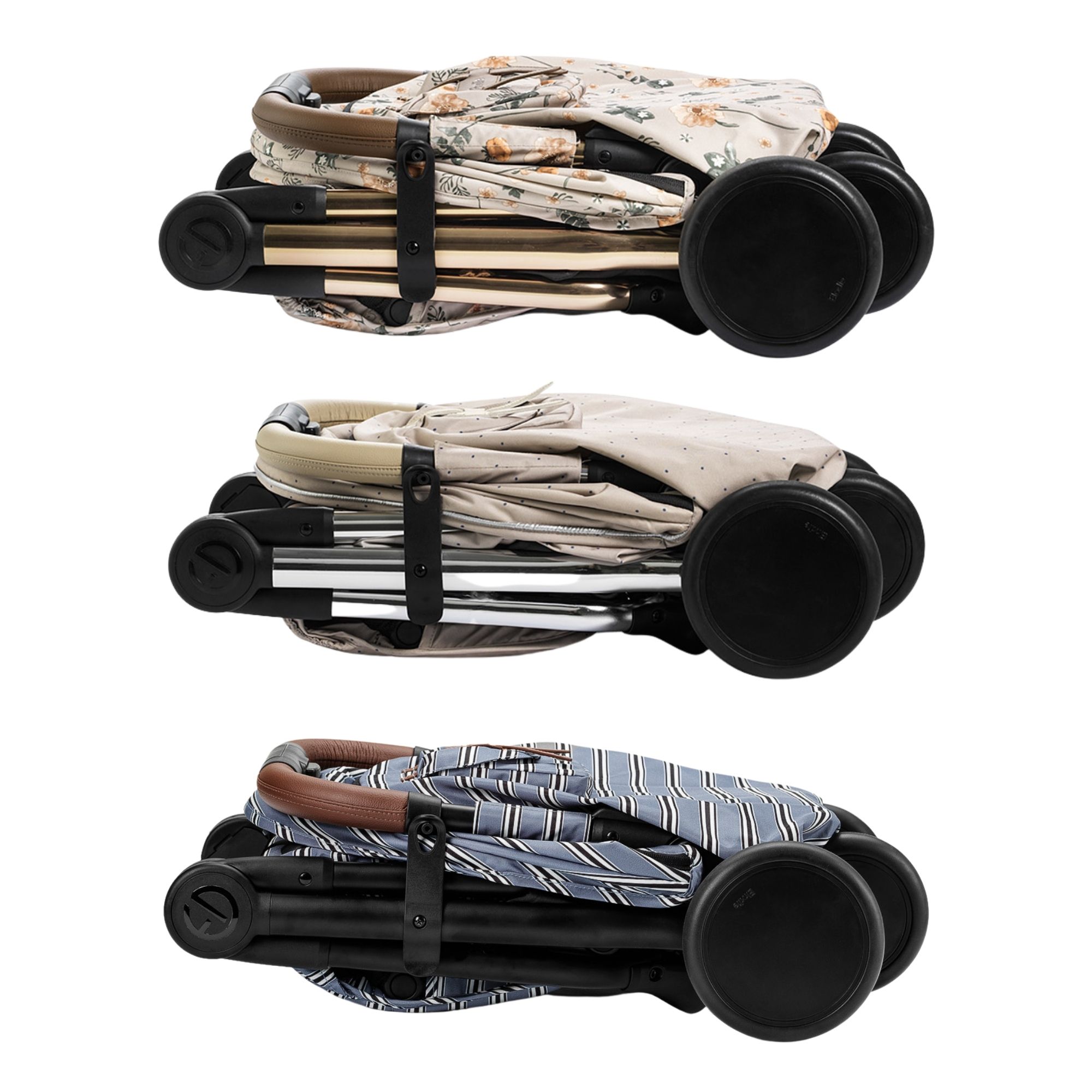 To, co wyróżnia wózki spacerowe Elodie Details, to przede wszystkim nowoczesny aczkolwiek delikatny i elegancki design. W proponowanej przez nas opcji kolorystycznej, na szczególną uwagę zasługuje złoty, połyskliwy stelaż oraz tapicerka ozdobiona roślinnym wzorem, który szczególnie spodoba się małym spacerowiczkom.